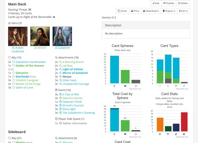 I think that this deck could produce more willpower faster if it dropped the Vilya combination and focused on getting generic questers out. Allies like the Sailor of Lune, Ethir Swordsman or West Road Traveller would all be good for boosting willpower numbers faster. I cloned the deck and simplified it by removing he “Vilya suite” of cards and boosting quantities of other important cards.